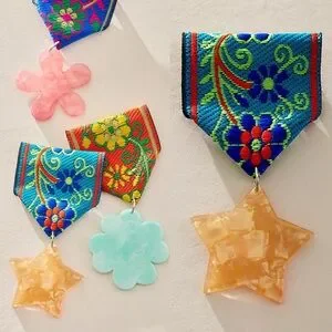 The perfect blend of cool and classic, this head-turning brooch is featured in a colorful design with embroidered textile top and dangling whimsical-shaped stone at bottom for an added special touch.