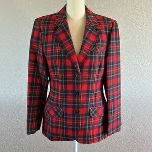 Vintage, 100% virgin wool, blazer in the most classic plaid color palette.