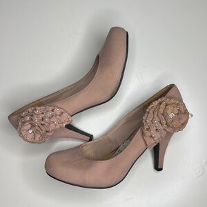 STEVE MADDEN PINK HEELS WITH FLORAL EMBELLISHMENT SIZE 7