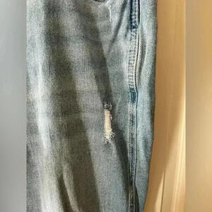 EUC Hollister High Rise Mom Jeans Great Condition! Lighter wash, rips and curvy fit. Tag shows size 13L BUT length shows 29. Waist is 31. Smoke free home. “Vintage Stretch” Great brand of jeans. See measurements in photos!