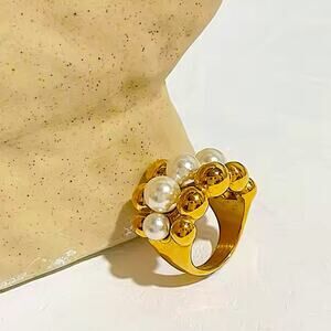 Large ball and pearl stainless steel gold plated statement ring. Comes in different sizes.