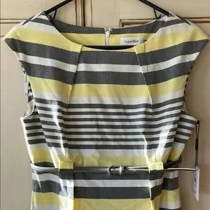 Calvin Klein Yellow and Gray Midi Dress