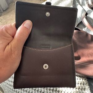 Coach card holder in rich chocolate brown leather