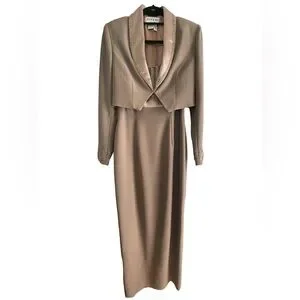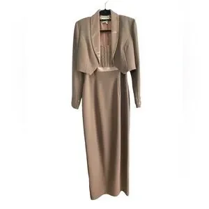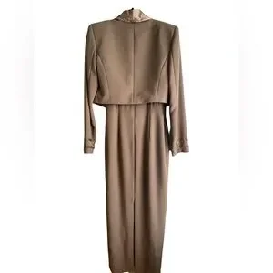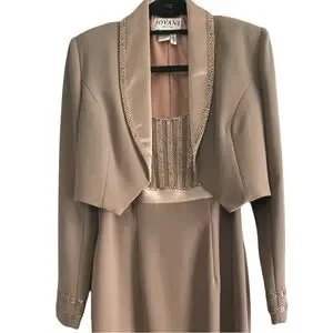 Jovani Tan & Gold Dress and Jacket Set With Beaded Embellishments Size 8