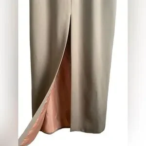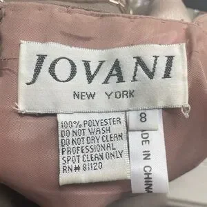 This elegant tan Jovani dress features a matching jacket, perfect for formal occasions. Soft satin lining, hand beaded detailing, perfect condition.
