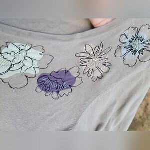 Stay cozy and stylish with the Merona Women's Gray Cardigan Sweater. Featuring elegant floral embroidery, this sweater is perfect for any occasion.
