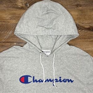 Champion Mens Middleweight T-Shirt Hoodie, Oxford Gray, Size L