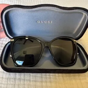 Authentic, bought from Nordstrom’s Rack in 2022. Wore a handful of times but ultimately didn’t like the shape of the sunglasses on my face. They’re in great condition!