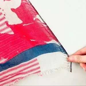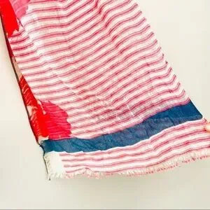 🎯3/$10 LOFT Coral White Grain Stripe Floral Lightweight Scarf Blue Border