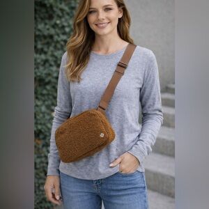 Cozy brown sherpa pouch by Lululemon. Perfect for carrying essentials.