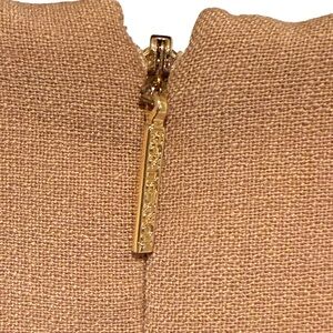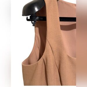 • This elegant tan/ camel color sleeveless dress is perfect for any occasion.
