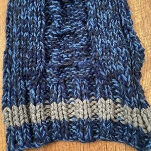 Chunky, deep blue and black scarf with grey stripe. Approximate measurements are 7 1/2 width and length is 66