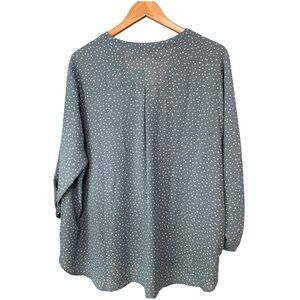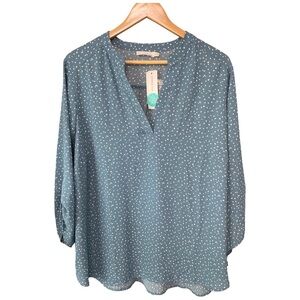 NEW with tags Lush Warren Split Neck Blouse Size 2X. Beautiful slate blue and cream top that has versatility and range. Roll tab sleeves and split neck detail. 100% polyester and machine washable.