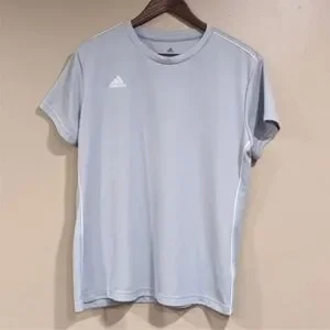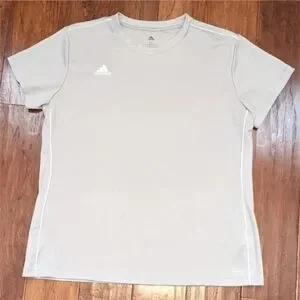 Adidas women's active tech workout/running t-shirt, light gray crewneck with white piping, size XL