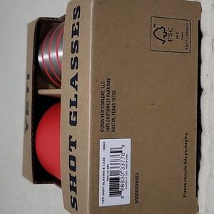 NIB YETI Red and Silver Shot Glasses With Srack And Pack Carrier