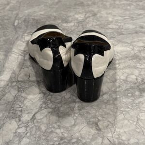 Taryn Rose White Leather Black Patent Wedge Shoes Heals Size 7 / 38 M