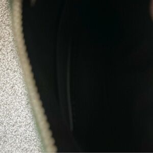Dark green leather crossbody bag with silver hardware. Removable chain and leather strap. In excellent condition with no visible flaws. Comes with bag of extra leather fringe for zipper pull.