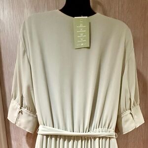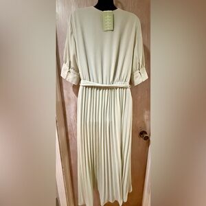 This elegant mint green dress features a pleated design and a stylish belt, perfect for any occasion. Its soft fabric and flattering fit make it a must-have addition to your wardrobe.