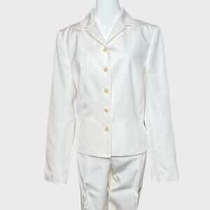 Ann Taylor Pant Suit Set Size 12 Silk Cotton Blend Ivory Lined