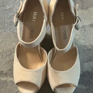 WAYDERNS Womens Solid Slingback Ankle Strap Peep Toe Wedge