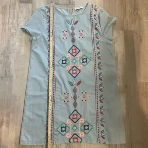 Hayden Los Angeles light blue embroidered Shift Dress size medium