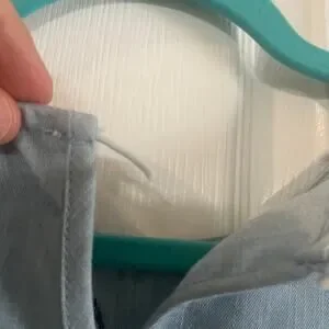 Two small flaws highlighted in picture. The elastic to hook the button needs to be fixed. Small pin hole near collar.