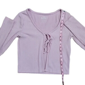 Hollister Womens Medium Pink Ribbed Tie Front Cropped Cardigan Y2K Soft Girl