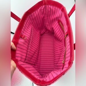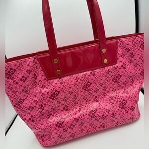 Great used condition Louis Vuitton Takashi Murakami Cosmic Blossom Vinyl PM Tote. Small smudge on the interior. Some color transfer on the bottom and back but is hardly noticeable.