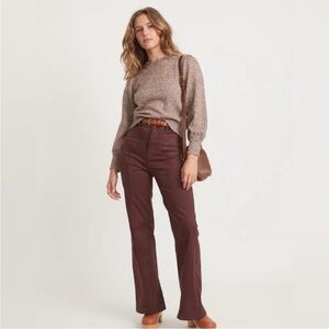 The Alma Marl Puff Sleeve Sweater by Marine Layer is a cozy brown knit sweater featuring puff sleeves and a crew neck. Its textured design adds interest, while the relaxed fit ensures comfort. This versatile piece can be styled with jeans or skirts for an easy, casual look.