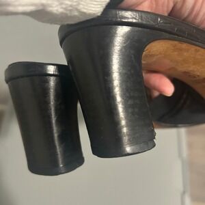 Keywords: Brighton shoes, black mules, fabric slides, heeled mules, braided shoes, women's shoes, size 10, black heels, slip on shoes, dress shoes, italian made, designer shoes, classic mules, evening shoes