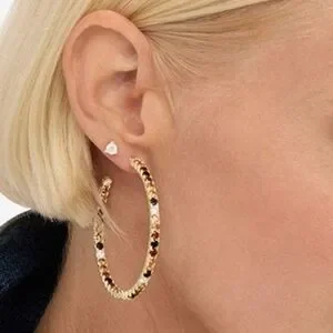 We LOVE our simulated diamonds. At any size the Heiress Hoops are easy and classy to put on and layer for a chic look.