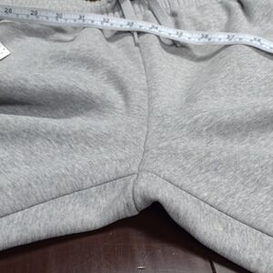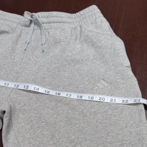 Step into comfort with these Adidas gray track pants, perfect for both athletic activities and casual lounging. Crafted from soft fleece material, they offer a relaxed fit and an elastic waistband for effortless movement. The modern Adidas branding along the leg adds a stylish edge to your sportswear collection.