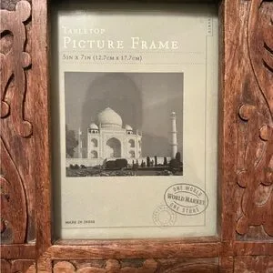 World Market wooden tabletop picture frame holds 5 x 7 pictures. Made in India