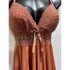Ancona Lingerie L/XL Burnt Orange Lingerie Babydoll Dress Lace Coquette Feminine