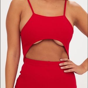 PRETTYLITTLETHING Red Cut Out Wide Leg Jum…