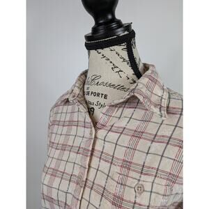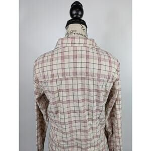 Title: Womens Medium Plaid Flannel Woolrich Button-Up Long Sleeve Pocket Snowflake Shirt Top