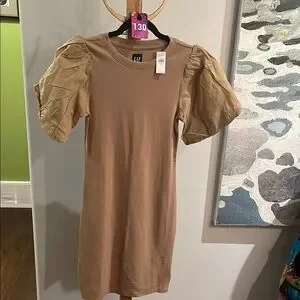 Elegant beige dress with puff sleeves from GAP. Ideal for versatile styling.