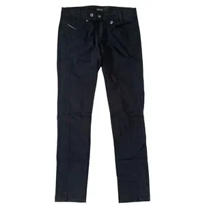 Upgrade your wardrobe with these stylish moto inspired Diesel Pantaloni pants in sleek black. These slim-fit pants are designed with a durable, high-quality fabric, offering both comfort and a modern aesthetic. They feature unique panel stitching, a four-pocket style and a zip fly with two button snap closure.