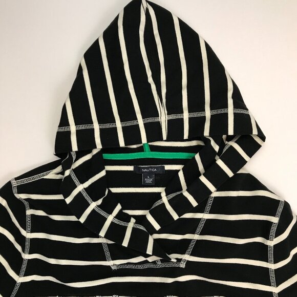 NAUTICA LARGE Cotton Blend Black White Pullover V-Neck Hoodie Top