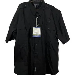 Protect and serve professionals deserve duty uniforms with superior, performance-driven features they can count on. Thankfully, 5.11 Tactical gets it right with this 41133-019 Men's Black Class B Short Sleeve Poly/Wool Uniform Shirt, size Size 2XL - 18-18.5.
