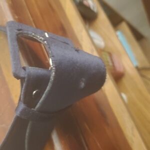 The matching belt does show some wear as shown in pictures #8 and #9. A scarf or gold chain worn around the waist would accessorize the jumpsuit beautifully.