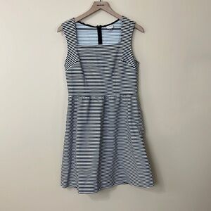 Square-neck black and white striped dress, semi stretchy material, medium weight, easy to dress up or down