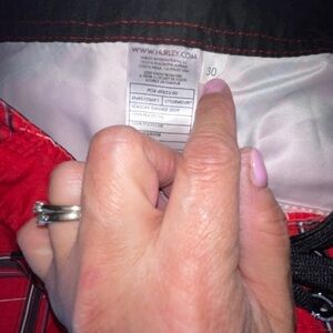 Hurley Board Shorts. Size 30. Features drawing, Velcro close pocket. EUC