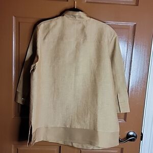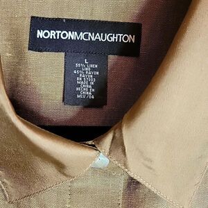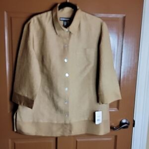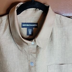 Norton McNaughton-Linen/Rayon tan colored shirt with 3/4 sleeves. L. NWT.