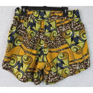 Ray Darten African Print Cotton Poplin Wide Leg Shorts Pockets Cotton Size L
