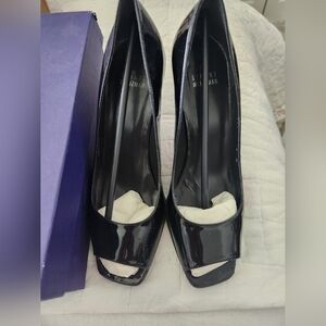 Stuart Weitzman Womens Patent Leather Peep Toe Pumps Black Size 9 Me…