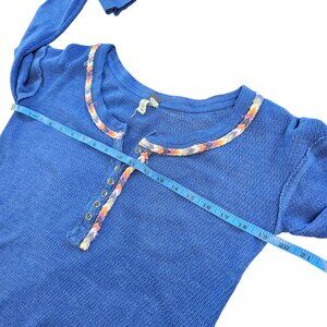 Free People Womens Blue Waffle Knit Henley Top With Embroidered Trim Size S