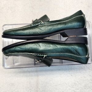Cole Haan Women's Green Leather Loafers with Silver Buckle Size 8.5B