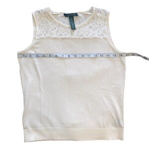 Lauren Ralph Lauren White Lace Trim Sleeveless Top Size Medium
