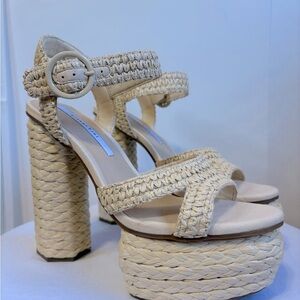 Gianni Bini, the Pelle Raffia Platform Sandals feature: